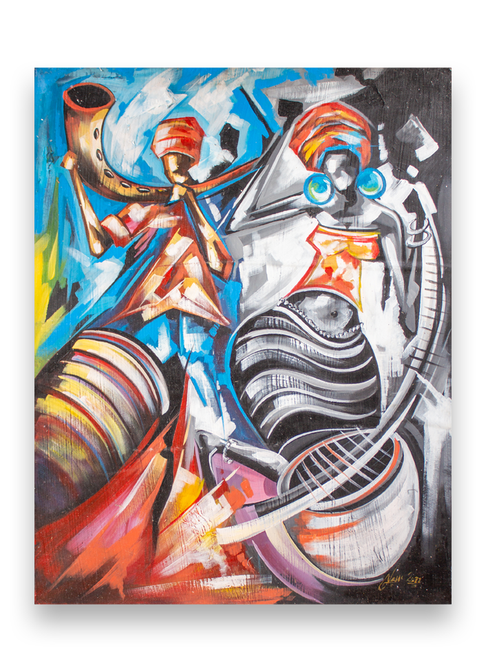 The music, brought to life in the depiction of the instruments, lends the work a powerful, emotional resonance and emphasises the cultural significance of the instruments depicted.