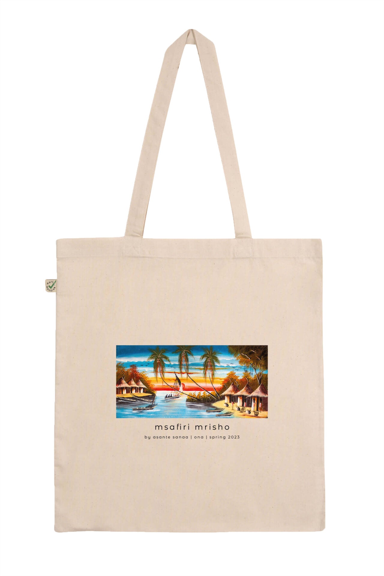 Mit dem Stoffbeutel, basierend auf dem Gemälde „Colourful Coast Village“ von Msafiri R. Mrisho, hast du immer einen besonderen Begleiter im Alltag dabei, wohin auch immer dich dein Weg gerade führt.