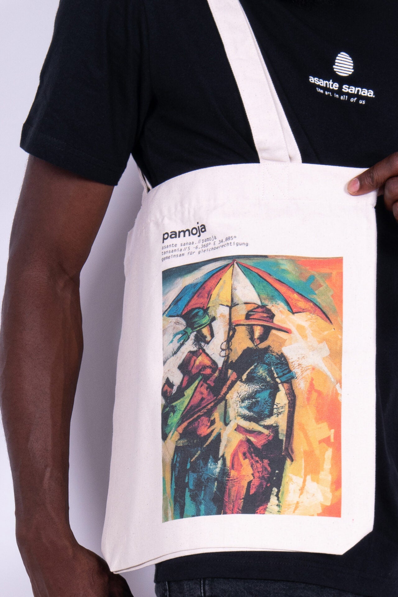 Der „Nasri“ Jutebeutel ist Teil unserer neuen Kollektion „Pamoja“. Übersetzt bedeutet das so viel wie gemeinsam. Und genau darum geht es uns auch. Wir möchten gemeinsam unsere Künstler:innen vor Ort unterstützen und legen in dieser Kampagne auch mit den Motiven ganz klar das Augenmerk auf unsere weiblichen Künstler:innen.