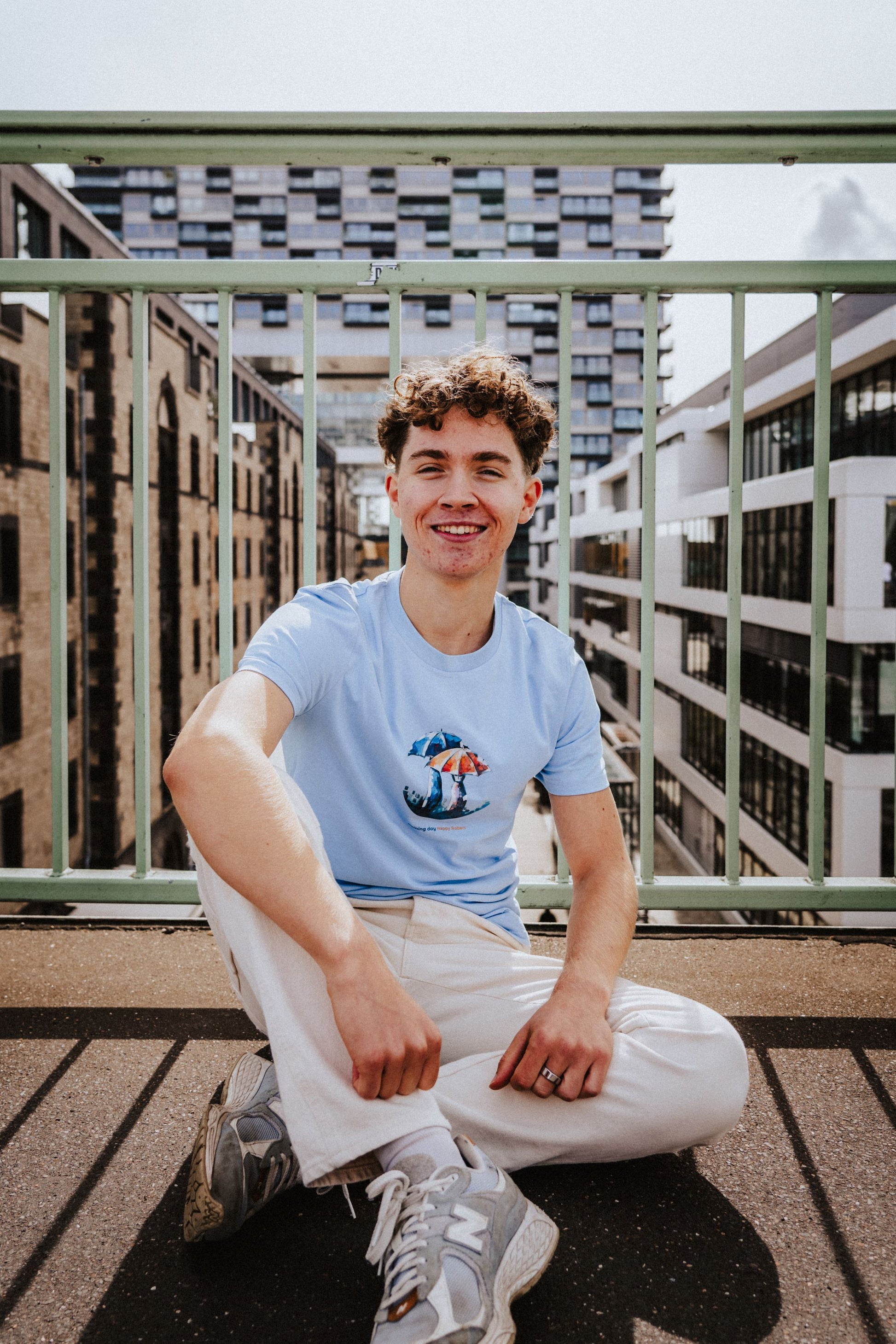 Das Shirt wird durch seinen Frontprint, basierend auf dem Gemälde „Raining day“ von Happy Robert zu einem modischen Unikat.
