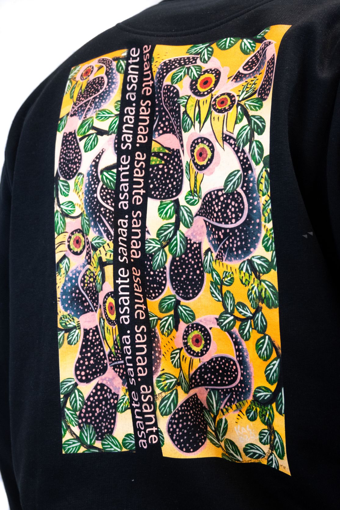 Das Sweatshirt wird durch seinen Backprint, basierend auf dem Gemälde „Happiness“ von Curthbet Ngwenuke zu einem faszinierenden Design mit Ausdrucksstärke.